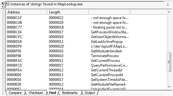 NOTE: The Find Results Window is limited to the first 128 bytes of each string.